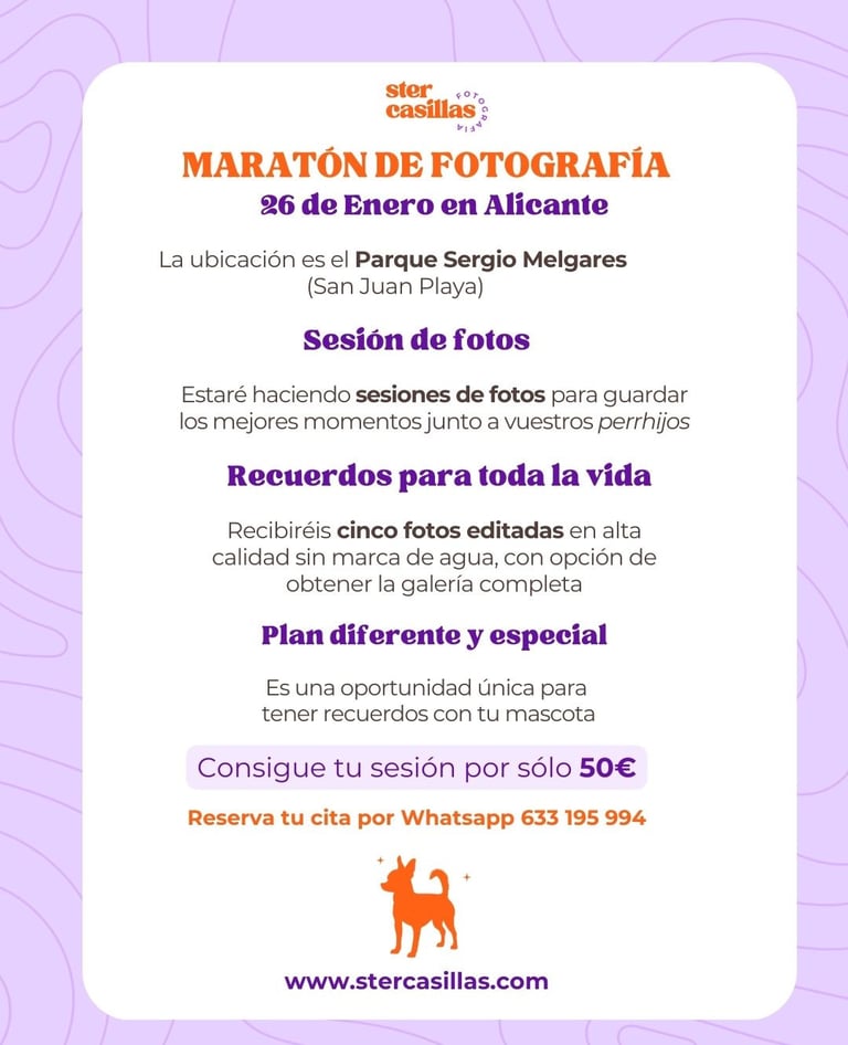 El Domingo 26 de Enero estaré realizando mi primer maratón en Alicante. Una oportunidad única para tener unas fotos chulísimas con tu mascota!